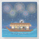 Cats Delighting in Fireworks Aboard a Houseboat Stone Coaster
