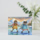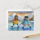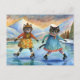 Cats dressed up ice skating on the lake in Alps Holiday Postcard
