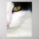 Gorgeous long haired black and white cat with golden eye. Photograph appears 'painted' for a richer look.