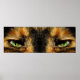 A cat's green eyes with tiny star shaped sparkles are staring out of this poster. Her beautiful brown and black fur surrounds the eyes.