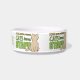 This is a heavy, durable bowl decorated with Tibbies of many colors, the perfect size for hungry/thirsty Tibs. The design is interesting and printing clear.