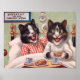 A delightful series of vintage illustrations depicting animal couples having breakfast in bed. This one is Cats.