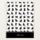 Celebrate cats with this adorable custom cat pattern planner. Planner features a pattern of adorable cats in black silhouette. Cats are relaxing, playing, jumping, and more. Add your first name for a personal touch.