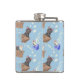 Cats in box and milk drops on blue hip flask