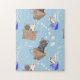 Cats in box and milk drops on blue jigsaw puzzle