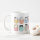 A playful white mug featuring adorable cartoon cats sitting inside colorful pockets with fun patterns, plus extra cat paws and faces around the design. Perfect for cat lovers to enjoy their favorite hot drinks while adding a touch of whimsy to the kitchen or office. Durable, stylish, and makes a thoughtful gift for friends and family.