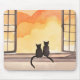 Cats in Window | Sunset Watercolor Silhouette Mousepad