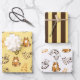 A fun pattern of cats lounging, rolling and just bring cute. One sheet has a yellow background, another white and the third has corresponding stripes.