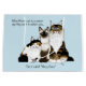 Three cute cats, a Siamese, Maine Coon Tabby and a Calico cat are sitting together in a backdrop of blue. When woman get to a certain age they start collecting cats... this is called Many Paws.
