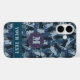 Cats navy camouflage. Seamless pattern. Custom text and monogram.