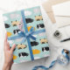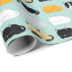 Adorable sleeping cats pattern features a tuxedo or bicolor cat, a grey tabby, an orange tabby, a white cat, a black cat, and a rag doll cat on a mint green background. Perfect for the (crazy) cat people in your life.
