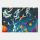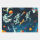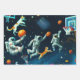 Cats Playing Basketball in Space with Astronauts Wrapping Paper Sheet