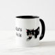 A fun design featuring black cats with gray patches sneaking around on this coffee mug. A saying of Cats Rule, this can be changed to something else if so desired.