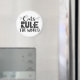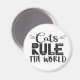 Fun and lovely modern fridge magnet featuring the words "Cats rule the world", decorated with white whiskers, cat scratches, a tiny mouse, and a little paw.