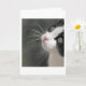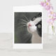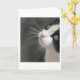 This sweet card for cat lovers and cat owners shows a close up photograph of the adorable face of a little black and white kitten. The cat is gazing skyward and has a very trusting expression on his face. He is very proud of his beautiful whiskers and this profile shot shows them off to full advantage!