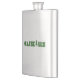 The product is a good size and came exactly as it was pictured.  The lid is not attached to the flask, which could be dangerous on drunken nights... The print came out surprisingly well and looks very sharp.  Would definitely recommend.