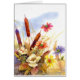 watercolor of cattails blowing in the wind in the middle of some wild flowers