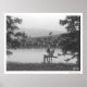 Cattle by a pond with two cowboys. poster