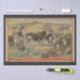 Cattle surrounded by farm animals on each side, and jockeys racing horses on a racetrack in this beautiful farm and sport ephemera.