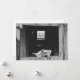 Black and white image of an old cattle ranch, on a big island of Hawaii, with a cow skull resting in the window cut out.