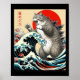 Catzilla Cat Japanese Art Funny Cat Gifts For Men Poster