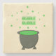 This awesome stone coaster features a graphic image of a grey cauldron. The cauldron is full to the top with a green potion brewed by a witch. The potion is bubbling out of the cauldron and has formed the word "bubble" which appears twice above the poisonous looking brew.