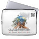 The sleeve is made of nice feeling material and seems very durable. I'm not sure how easy it'll be to clean, but the construction seems sound and the fabric is quick thick. I also like the double zipper. The printing is lovely and appears durable. The white on black contrast is nice, and the design very elegant.