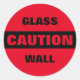 Caution Glass Wall Classic Round Sticker Red