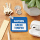 Funny warning sign. Custom background colour. Two custom text fields for title and message. Custom text at the back side.