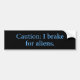 Bumper Sticker design featuring the funny statement: Caution: I brake for Aliens.