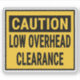 Caution Low Overhead Clearance Sign