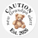 CAUTION new Grandpa alert- Teddy Baby Announcement Classic Round Sticker