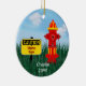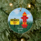 Caution Slippery Grass Dog Puppy Fire Hydrant Christmas Ceramic Round Ornament. Copyright (c) 2022 Claudine Boerner and its licensors. All rights reserved.