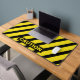 Like a caution sign, the yellow and black diagonal stripes, along with the large text catches the eye. Enhance home or office decor with this funny desk mat.