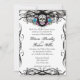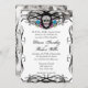Cavaleras Muerte Skull and Flourishes Invite. A really urban and hip tattoo style Dia De Los Muertes Sugar Skull Wedding Invitation. Features a colourfully decorated Muerte Skull often called a Calaveras, brightly coloured flowers surrounded by elegant flourishes. Background is a distressed paper look! Created and copyright Julie Farrell 2012. Please do not copy or reproduce outside of Zazzle per copyright legalities.. PLEASE CHECK MY STORE FOR COORDINATING RSVPS AND OTHER WEDDING ITEMS WITH THIS DESIGN.