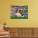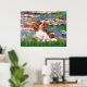 Water Lilies by Impressionist Claude Monet (1914), adapted to include a blenheim Cavalier King Charles Spaniel. One of many water lily paintings, this one has red or bright pink lilies in the pond. It sold at auction in 2008 for over 70 million.