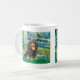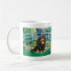 Lily Pond Bridge by Claude Monet, adapted to include a black and tan Cavalier King Charles Spaniel. With varying hues of green and blue, this serene scene is one of Monet's most popular paintings