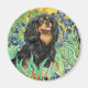 Irises by Van Gogh, adapted to include a black and tan Cavalier King Charles Spaniel.