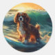 Cavalier King Beach Surfing Painting Classic Round Sticker