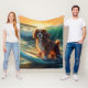 Cavalier King Beach Surfing Painting Fleece Blanket