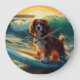 Immerse yourself in the playful world of canine adventure with this captivating painting. A spirited dog takes to the waves, skilfully riding the surf on a sun-kissed beach. The vibrant artwork beautifully captures the essence of beachside excitement as the dog fearlessly rides the waves, embodying the spirit of fun and freedom. With a harmonious blend of colours and dynamic brushstrokes, this piece brings the joy of surfing and the beach right into your space, making it a delightful addition to any art collection