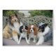 Adorable card for dog lovers. Four pet, two Cavalier King Charles Spaniels and two Shetland Sheepdogs pose for the camera. Models are Micah, Brodie,Abby and Jesse. This is a great all occasion card by PetVenturesUSA.