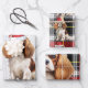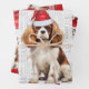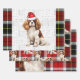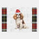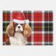 An adorable Cavalier King Charles spaniel is ready for the holiday season with a Santa hat. This cute Christmas dog is paired with a red and green holiday plaid on this set of gift wrap for the dog lover.