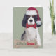 Tri-Colour Cavalier King Charles Spaniel sporting Santa Hat, wearing Christmas Bow Tie brings message of, "All I want for Christmas is Kisses" in this adorable Christmas design by Friskybizpet Designs. Show the spirit of Christmas when you send dog lovers original one of a kind cards by Friskybizpets.