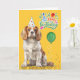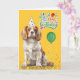 Cavalier King Charles Party Hat Yellow Birthday Card
