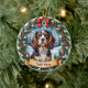 A beautiful, ultra-detailed Christmas ornament design featuring a realistic portrait of the breed centered within a soft, festive winter frame. This elegant design includes pine branches, red berries, and snowflakes against a snowy backdrop, illuminated by warm holiday lighting. The balanced, round composition includes clear space below the dog for customization.
