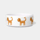 This is a heavy, durable bowl decorated with Tibbies of many colors, the perfect size for hungry/thirsty Tibs. The design is interesting and printing clear.