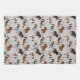 Cute Cavalier King Charles Spaniel with black, brown and white coats with scattered dog bones and pawprints pattern.