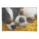 This is a standard size pillowcase featuring an original photograph of two adorable Cavalier King Charles Spaniels, one tricolor and one blenheim, sleeping together on their favourite blanket.