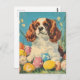 Celebrate Easter with the timeless charm of a Cavalier King Charles Spaniel in this vintage-style postcard. Featuring the beloved dog surrounded by pastel Easter eggs, blooming spring flowers, and festive details, this design is perfect for Spaniel lovers, collectors, or anyone who appreciates classic holiday art. A delightful keepsake to share Easter joy.